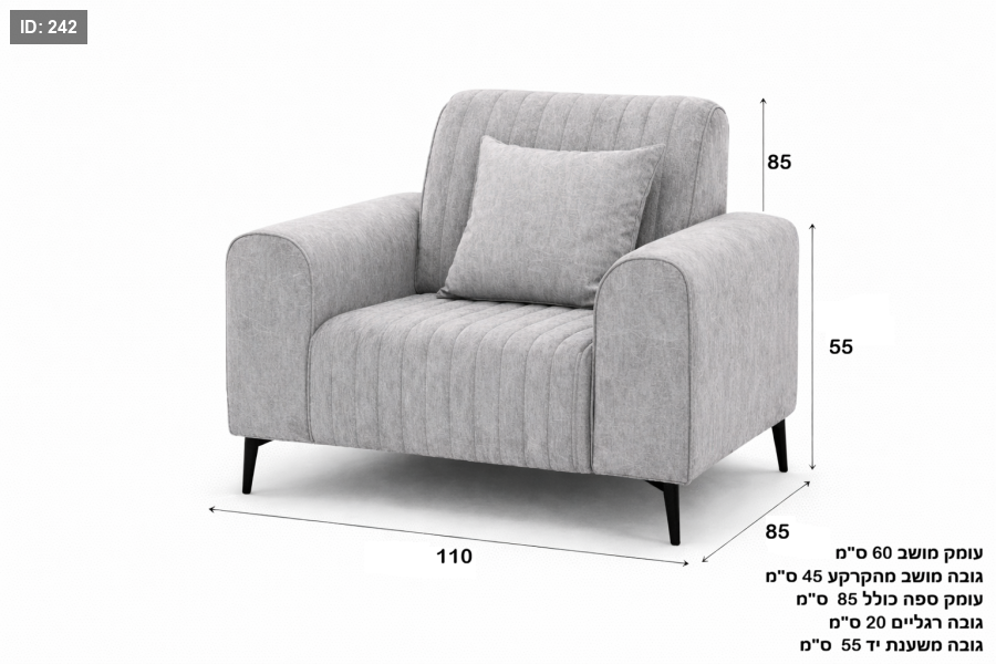 . מידות כורסה: אורך 110 ס"מ / עומק 85 ס"מ