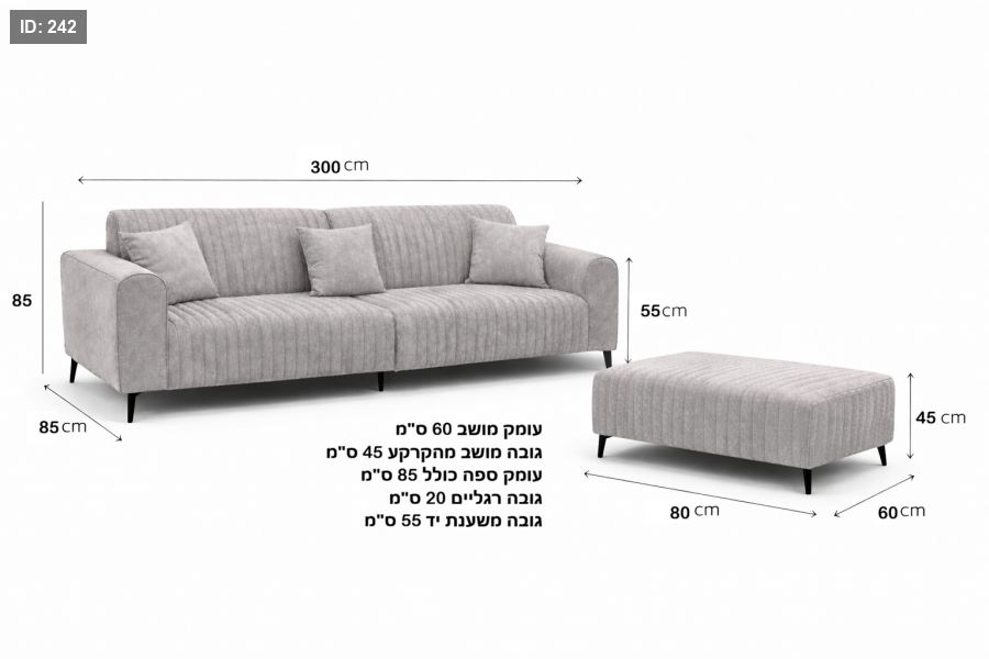 . מידות משענת רגליים: אורך 80 ס"מ / רוחב 60 ס"מ