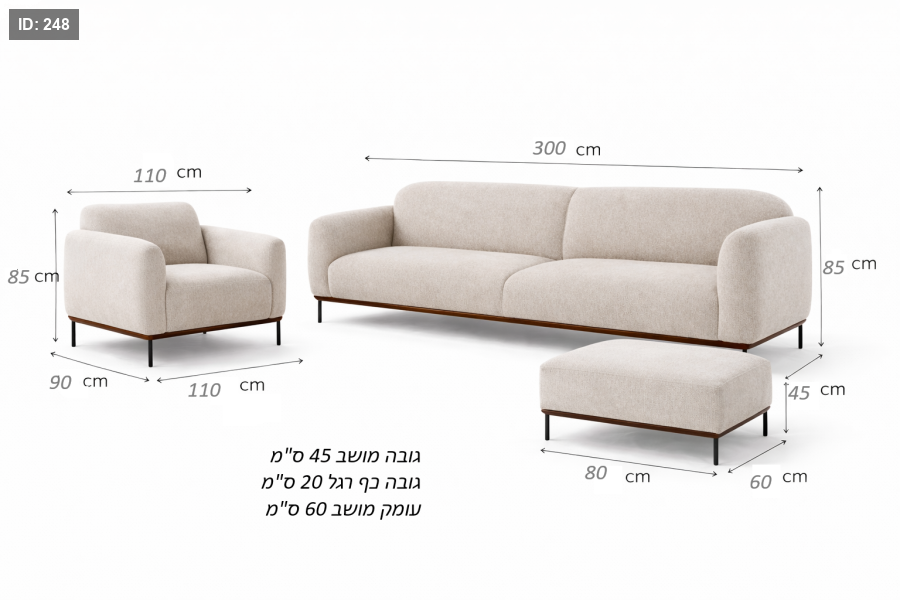 • עומק הספה: 90 ס"מ