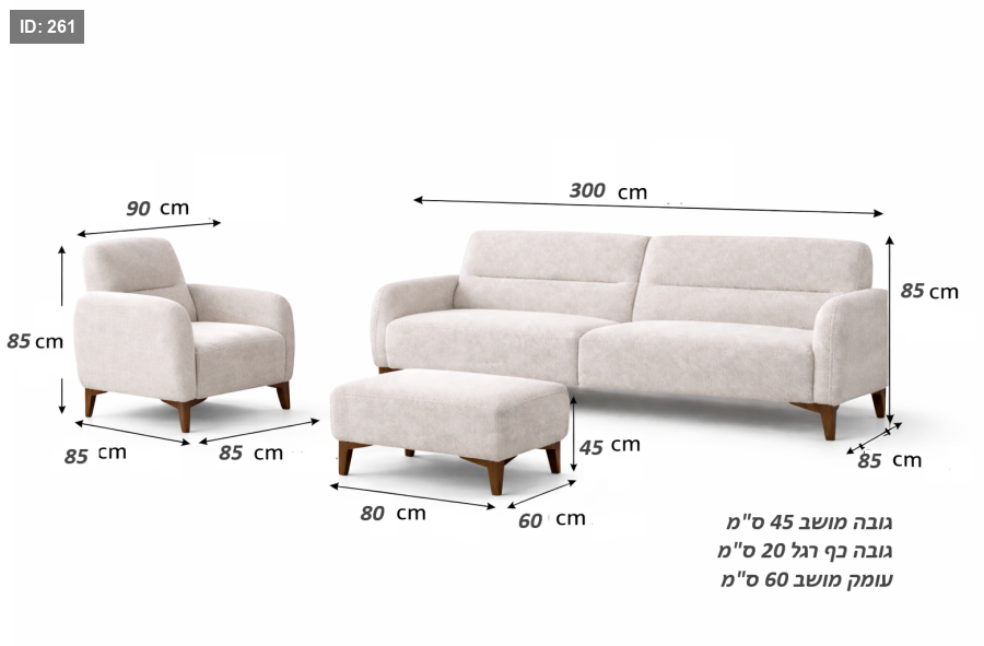 • עומק הספה: 85 ס"מ
