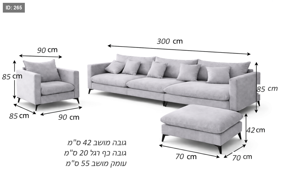 • עומק הספה: 85 ס"מ