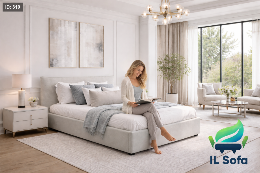 מיטה זוגית מרופדת, ראש מיטה גבוה, ארגז מצעים, אפשרות להוספת מזרן ושולחנות צד. דגם m1 זמין במגוון צבעים ובכל המידות. לפרטים נוספים, אנא צרו קשר בוואטסאפ בטלפון 972526323551+