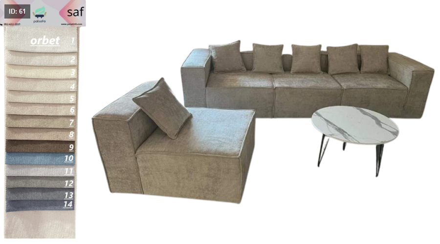 ספה, עומק 1 מטר, גובה מושב 45 כולל כורסה, אורך 1 מטר, עומק 1 מטר